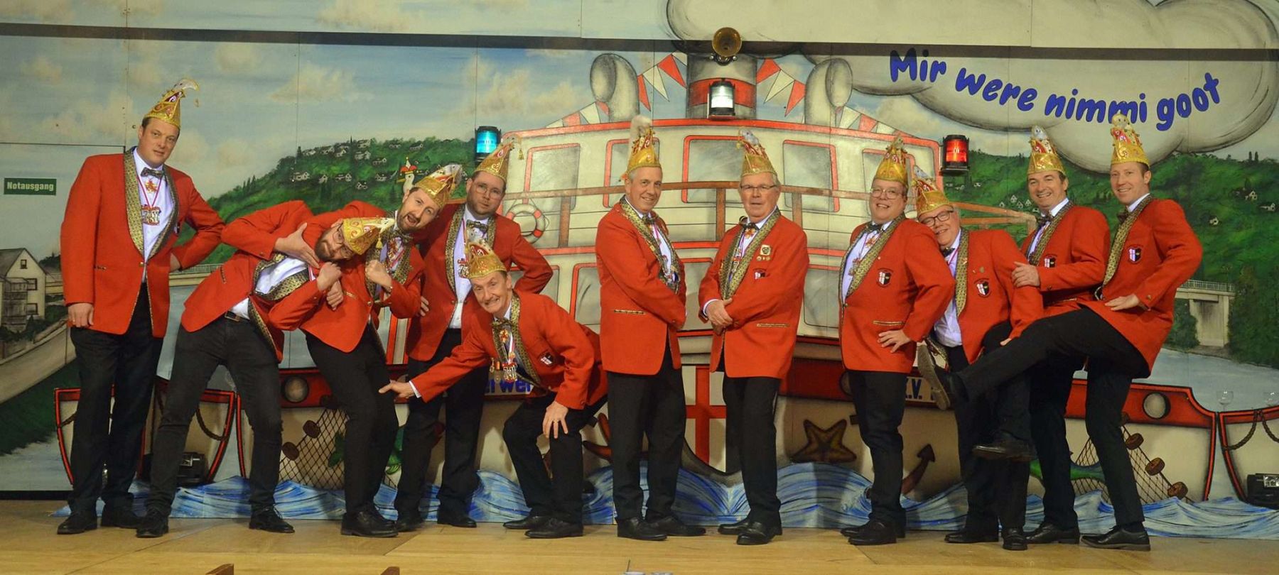 Helmut: Überall gibt es Höhen und Tiefen, wichtig ist es jedoch zusammenzuhalten. Karneval ist zwar eine humorvolle Sache, die jedoch mit dem nötigen Ernst von den Akteuren angepackt werden muss. Bei uns im Verein ist jeder gleich. Es gibt keinen Elferrat, der sich nur auf der Bühne präsentiert. Bei uns sind alle Aktiven automatisch auch Elferratsmitglieder und jeder packt an bei den Arbeiten auf und hinter der Bühne. Der Büttenredner aus der Sitzung stellt nachmittags die Stühle im Saal und bläst die Luftballons auf für’s Finale. Zusammen sind wir eine große närrische Familie; der Vater dieser Familie ist unser Präsident Albert Klöckner †.